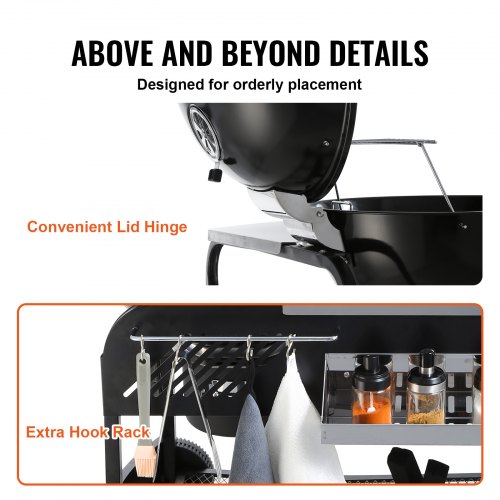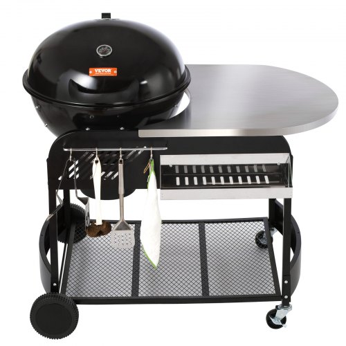 VEVOR Griglia a Carbone Carrello Griglie a Carbone 109x79x101 cm, Griglia a Carrello con Appoggio 54 x 54 cm Superficie della Griglia Portaoggetti da Campeggio con Posacenere Gancio, Griglia Carrello