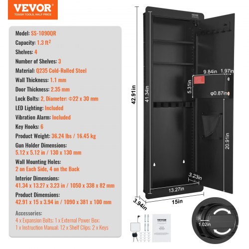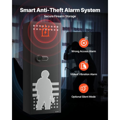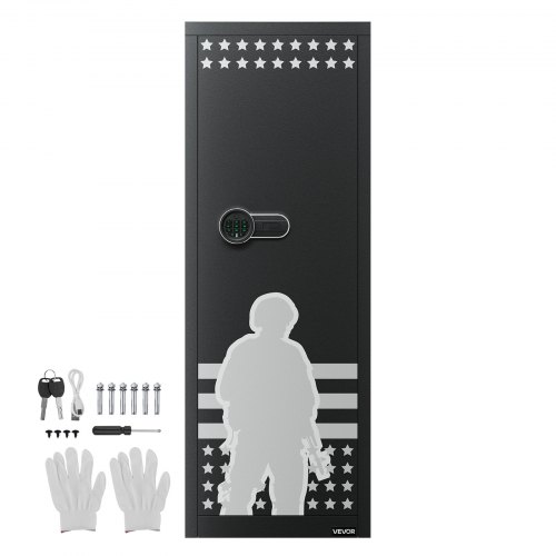 VEVOR Cassaforte da Muro Cassaforte con 4 Livelli 3 Ripiani Rimovibili 6 Portachiavi Luce LED Allarme a Vibrazione, Tastiera Impronta Digitale per Passaporti Armi Lunghe Gioielli Contanti Documenti