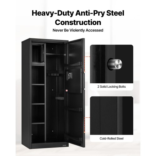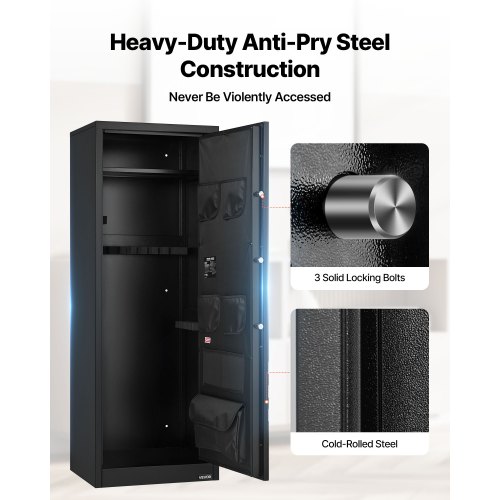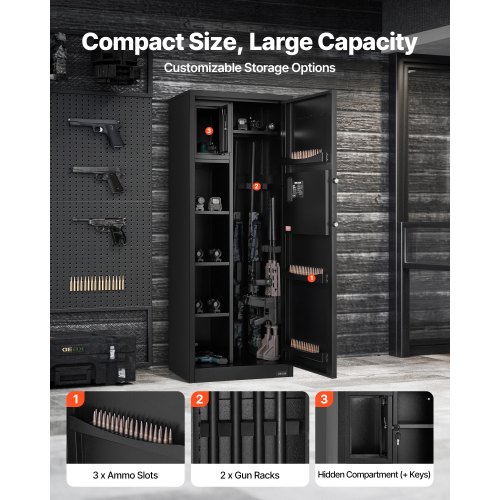 VEVOR Armadio per Armi Lungo per Fucili e Pistole, Cassaforte Ignifuga con 3 Scomparti per Munizioni 2 Ripiani Regolabili, Cassaforte per Armi con Chiave e Serratura a Combinazione