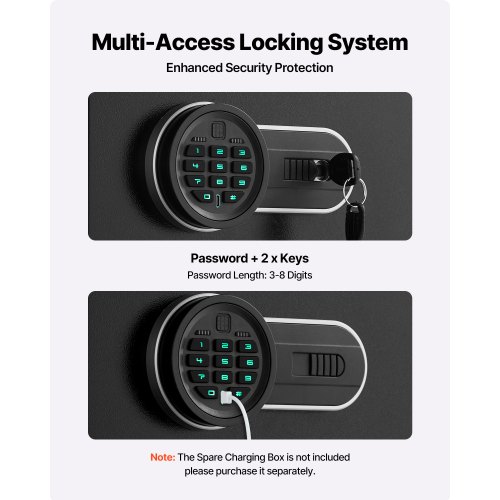 VEVOR Cassaforte per Pistole in Acciaio Cassaforte Biometrica per 2 Pistole 3 Modi di Tasti Sblocco per Impronte Digitali Combinazione per Gioielli Documenti Pistole Uso Domestico Cassaforte Pistole