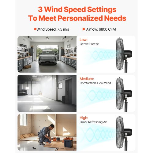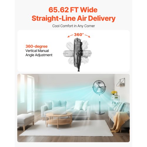 VEVOR Ventilatore da Pavimento, 3 Velocità, Ventilatore Industriale ad Alta Velocità da 508 mm 135,92 m³/min Inclinazione Regolabile a 360° per Casa, Garage, Negozio Commerciale e Camera da Letto