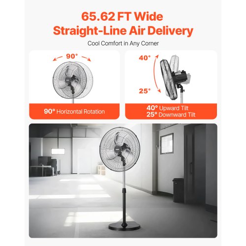VEVOR Ventilatore da Pavimento, 3 Velocità, Ventilatore Industriale ad Alta Velocità da 450 mm 113,26 m³/min Inclinazione Regolabile a 360° per Casa, Palestra, Ufficio, Garage, Negozio Commerciale