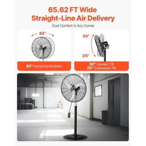 VEVOR Ventilatore da Pavimento, Ventilatore Oscillante da 24 pollici Girevole a 85 Gradi, Altezza Regolabile con 3 Velocità Regolabili, Alta Potenza per Camera da Letto, Soggiorno, Casa, Ufficio