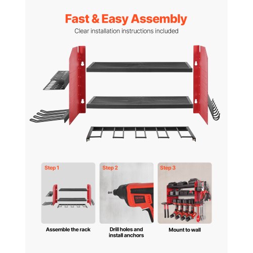 VEVOR Scaffale per Utensili Elettrici da Parete, Portautensili da Parete per Trapani a 3 Livelli con 4 Supporti per Trapano, Portaoggetti con Pannelli Forati Laterali, per Utensili da Garage Officina