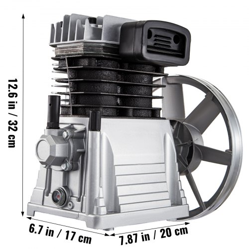VEVOR Testa Pompa del Compressore d'Aria Potenza 3 HP Testa della Pompa a Pistone del Compressore d'Aria 2 Cilindri Lubrificata a Olio Testa Pompa Tipo V Pressione Massima 116 PSI Flusso 177L/min