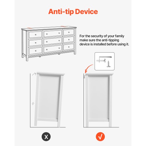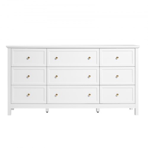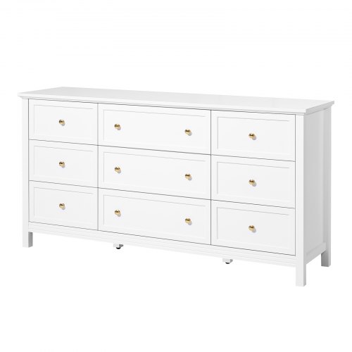 VEVOR Cassettiera a 9 Cassetti 39,9 x 149,9 x 78,7 cm Cassettiera in Legno con Meccanismo Scorrevole e Antiribaltamento, Porta TV Organizzatore per Soggiorno, Corridoio, Camera da Letto, Bianco