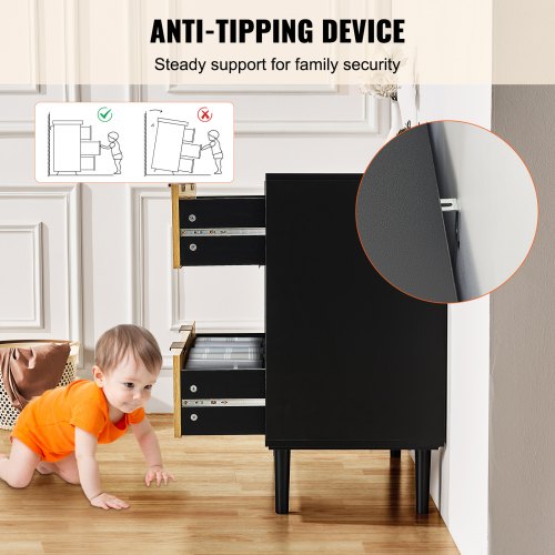 VEVOR Cassettiera a 6 Cassetti 39,6 x 120,1 x 78,7 cm Cassettiera in Legno con Meccanismo Scorrevole e Antiribaltamento, Porta TV Organizzatore per Soggiorno, Corridoio, Camera da Letto, Bianco