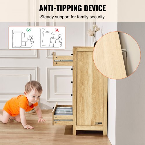 VEVOR Cassettiera a 6 Cassetti Scanalati, Cassettiera in Legno con Meccanismo Scorrevole e Antiribaltamento, Moderna e Minimalista, Organizzatore per Armadio per Camera da letto, Legno Chiaro