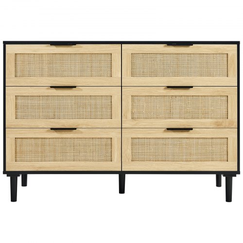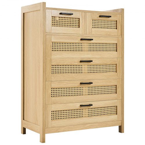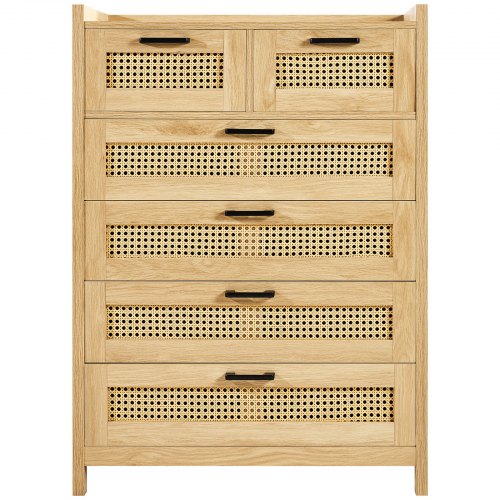VEVOR Cassettiere in Rattan Naturale con 6 Cassetti, Moderna Cassettiera Armadio in Legno, Organizzatore per Vestiti e Contenitori Boho con Maniglie e Gambe Robuste, per Camera da Letto Soggiorno