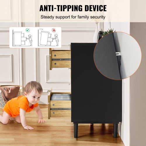 VEVOR Cassettiera a 6 Cassetti 39,9 x 137,2 x 81,3 cm Cassettiera in Legno, Meccanismo Scorrevole Antiribaltamento, Moderna e Minimalista, Organizzatore per Armadio per Camera da Letto, Legno Chiaro