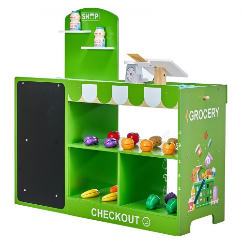 VEVOR Set da Gioco per Bambini in Legno di Alta Qualità 81,5 x 30,7 x 85 cm con Borsa della Spesa, Negozio di Giocattoli con Nastro Trasportatore, Scanner, Registratore di Cassa, Scala Realistica
