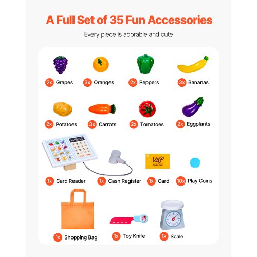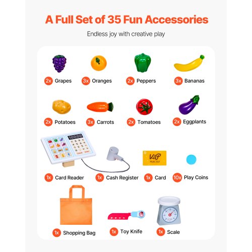 VEVOR Set da Gioco per Bambini, Giocattolo Educativo in Legno con Borsa della Spesa, Set di Giocattoli per Bambini con Nastro Trasportatore, Scanner, Registratore di Cassa, Scala Realistica