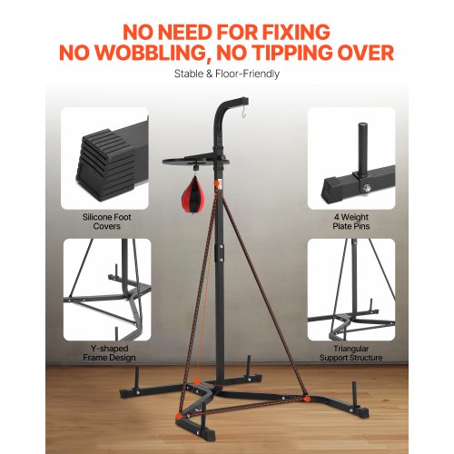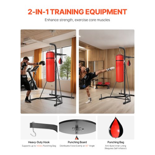 VEVOR Supporto per Sacco da Boxe, Attrezzatura per Allenamento Regolabile in Altezza, Supporta 65 kg, Supporto Indipendente con Base Appesantita, Sacco per Allenamento Palestra Casa
