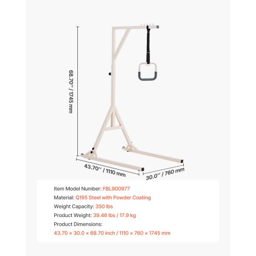 VEVOR Barra Trapezio per Mobilità a Letto in Acciaio Resistente, Barra Trapezio Autoportante, Facile da Installare, per Anziani Disabili, Ideale per Ospedali, Casa di Cura e Assistenza Domiciliare