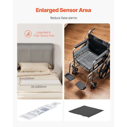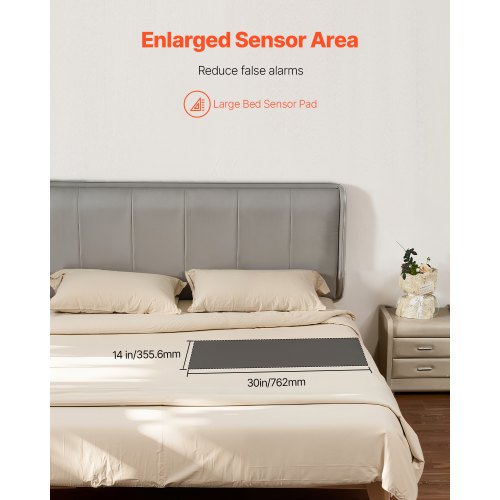 VEVOR Sistema di Allarme per Letto per Anziani, Sensore Wireless per Letto da 355,6 x 762 mm con Cercapersone, Allarmi di Sicurezza e Cuscinetto Anticaduta per Letto per Casa, Ospedale