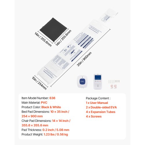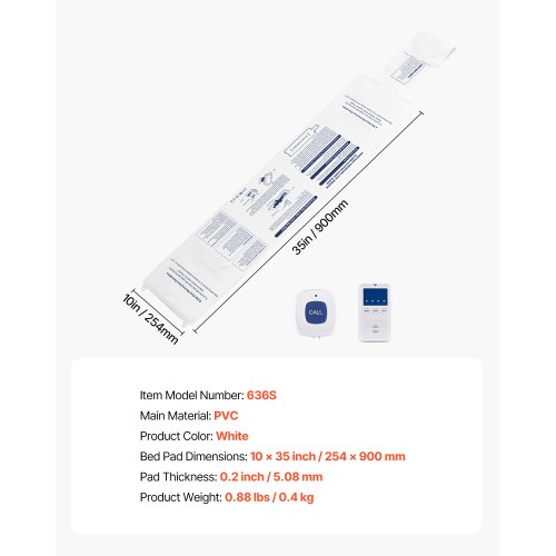 VEVOR Sistema di Allarme per Letto, Sensore Wireless per Letto con Cercapersone e Pulsante di Chiamata, Allarmi di Sicurezza per Letto per Anziani per Casa Ospedale, Cuscino 254 x 889 mm