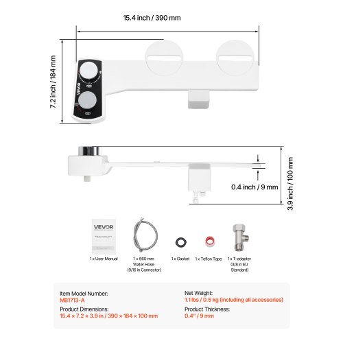 VEVOR Attacco per WC Bidet da 7 mm, Attacco per Sedile WC Ultrasottile con 2 Ugelli Retrattili e Pressione dell'Acqua Regolabile, Spruzzatore di Acqua Fredda non Elettrico, Anteriore e posteriore