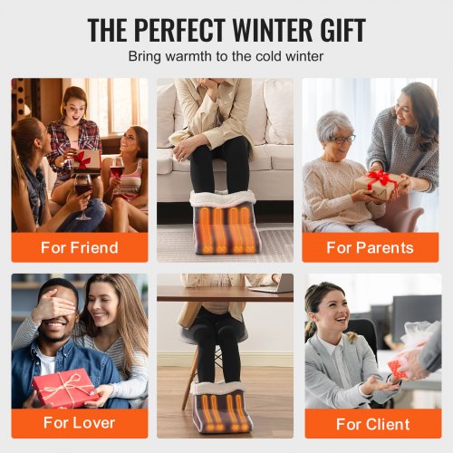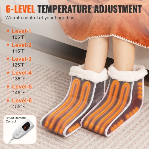 VEVOR Scaldapiedi Elettrico, Cuscinetto Riscaldante Bifacciale per Piedi, Pantofole Riscaldanti a 6 Livelli con Timer Spegnimento Automatico, Stivali Riscaldati in Flanella Morbida, Scarpe Lavabili