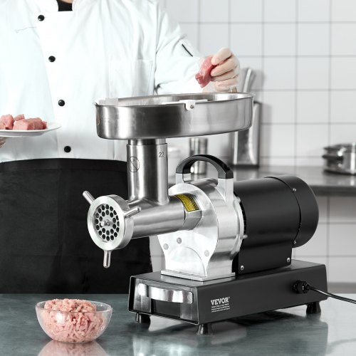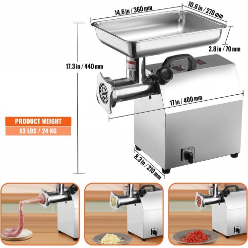 VEVOR Tritacarne Elettrico, Capacità 6,35 kg/min Tritacarne Industriale da Banco con Lama, Piastra di Macinazione, Macchina per Salsicce, Tritacarne Commerciale in Acciaio Inossidabile per Cucina