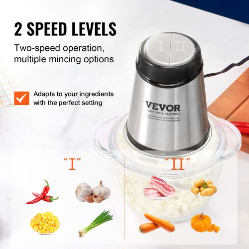 VEVOR Tritacarne Elettrico 400W Multifunzione da Cucina Capacità di Riempimento 2000mL 2 Velocità 3000 giri/min + 4000 giri/min, Tritatutto Elettrico con Ciotola in Acciaio Inox Mixer Multifunzionale