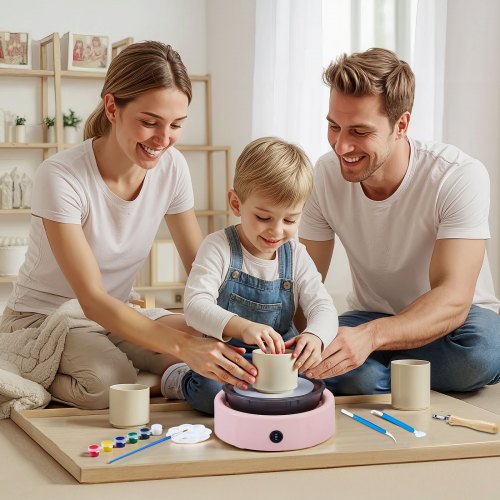 VEVOR Mini Tornio per Ceramica Diametro 158 mm, Piatto Girevole Velocità di Rotazione Regolabile, Tornio Elettrico per Argilla Strumenti per Modellare l'Argilla, Adatto per Corsi di Ceramica, Rosa