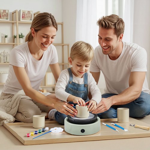 VEVOR Mini Tornio per Ceramica Piatto Girevole da 50/80 mm Velocità Regolabile, Tornio per Argilla per Principianti, Set Completo per Ceramica Strumenti per Scultura dell'Argilla, Fai-da-te, Verde