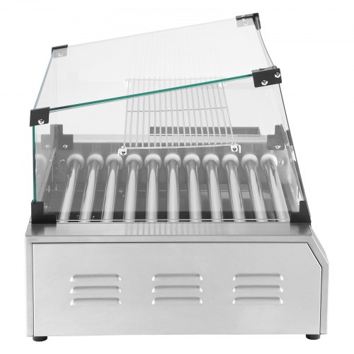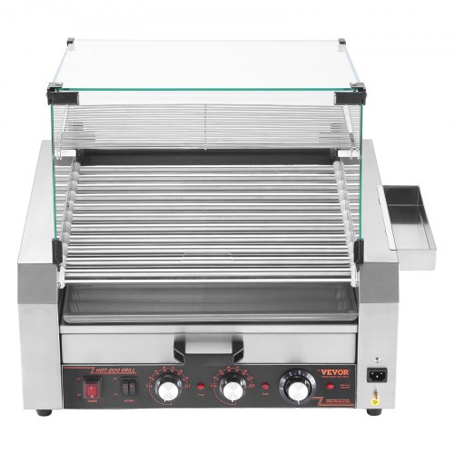 VEVOR Rullo per Hot Dog, 30 Hot Dog 11 Rulli, Cuocitore per Salsicce in Acciaio Inox da 2400 W Scalda Panini, Coperchio, 3 Controlli di Temperatura, Contenitore Laterale, Vassoio Raccogli-Olio