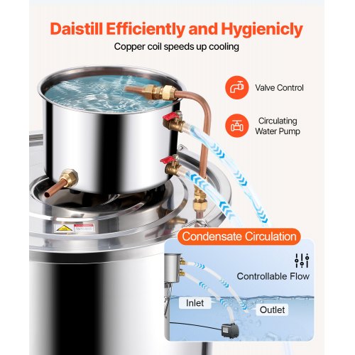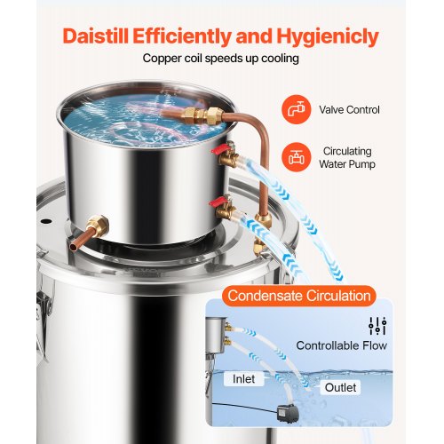 VEVOR Kit di Distillatore Alambicco in Acciaio Inox Rame Puro Materiale per Uso Alimentare Capienza del Serbatoio 30L, Kit Distillatore 35 x 35 cm per Liquore Acqua Distillata Vino con Pompa d'Acqua