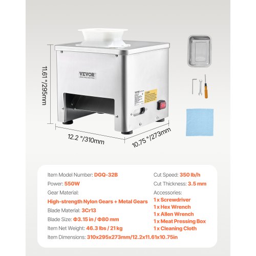 VEVOR Verticale Affettatrice Elettrica di Carne, Tagliatrice per Carne Commerciale, 750W 220V, Uscita 500 kg di Carne all'Ora, Taglierina Elettrica per Carne in Acciaio Inossidabile, con Un Vassoio