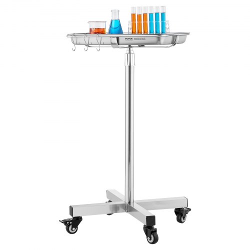 VEVOR Carrello da Laboratorio in Acciaio Inox, Carrello Portaoggetti Carico 16kg, Carrello da Laboratorio Regolabile in Altezza 84-132,5 cm, Vassoio Rimovibile, Carrello per Clinica Salone Ospedale