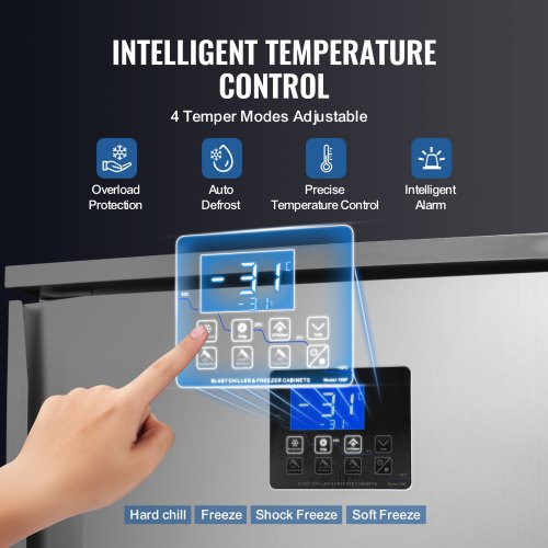 VEVOR Congelatore per Frutti di Mare Uso Commerciale Abbattitore Rapido 114L con 5 Vassoi, Congelatore Commerciale 4 Modalità per Alimenti in Acciaio Inox con Ruote per Cucina Commerciale Ristoranti
