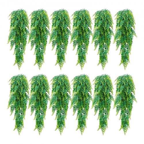 VEVOR Piante Artificiali Cadenti 12 pezzi, Felci Finti Pendenti Felce di Boston Lunghezza 813 mm, Pianta Sospesa per Decorazione da Interno Esterno da Parete, Casa Giardino Feste Matrimonio Portico