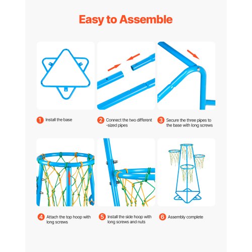 VEVOR Canestro da Basket per Bambini a 4 Cerchi, Supporto da Basket Portatile con Altezze Regolabili e 3 Palline, Set di Giocattoli da Basket per Interni Esterni, Giocattoli da Basket per Bambini, Blu