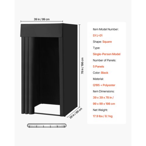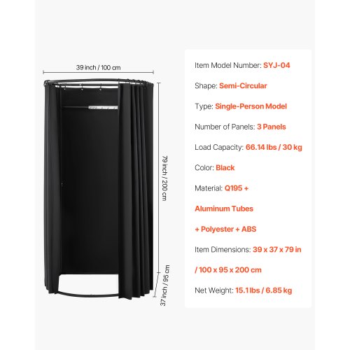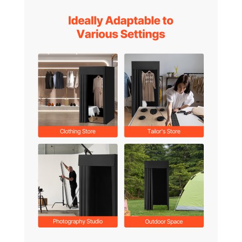 VEVOR Camerino di Prova da 100 x 95 x 200 cm Spogliatoio Portatile Mobile con Tende Spesse in Poliestere, Tenda Ombreggiante e Gancio, per Boutique, Centri Commerciali e Attività all'Aperto, Nero