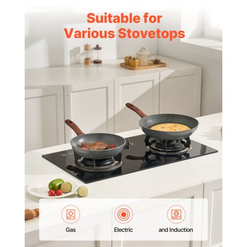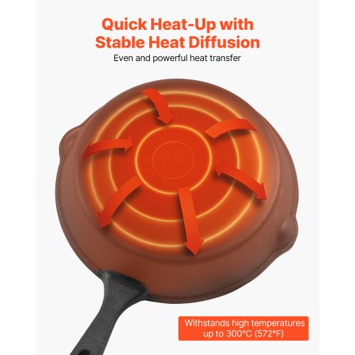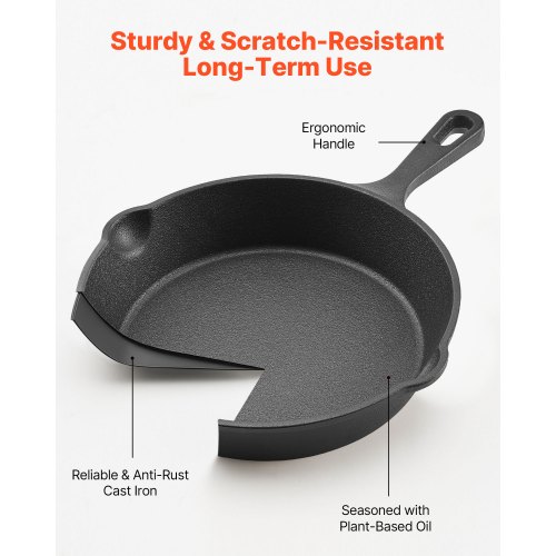 VEVOR Padella in Ghisa, Set di 4 Padelle Antiaderenti (155, 205, 260, 305 mm), con Manico in Silicone Resistente al Calore, Padella da Chef Pre-Trattata, Pentole da Cucina per Gas, Elettrico, Nero