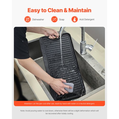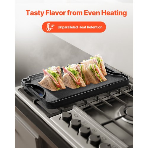 VEVOR Piastra per Cucina in Ghisa Reversibile 185 x 242 mm, Padella Rettangolare Portatile con Manico, Pentolame per Piano Cottura Peso ca. 3,7 kg Piastra per Cottura Barbecue Materiale in Ghisa