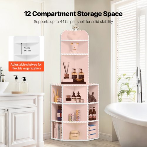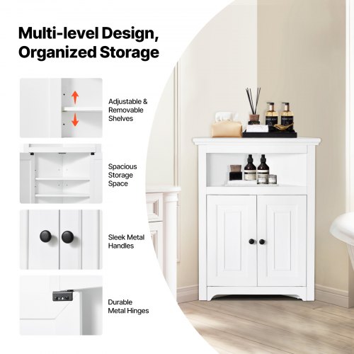VEVOR Mobiletto Angolare Portaoggetti Altezza 84,5cm Mobiletto da Casa in Legno con 2 Porte Ripiani Regolabili, Mobiletto Angolare Indipendente per Soggiorno, Cucina, Lavanderia, Bagno, bianco