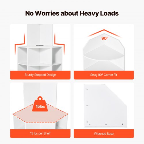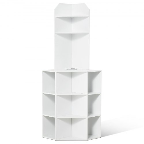 VEVOR Mobiletto Angolare Portaoggetti Altezza 162,6cm, Mobiletto in Legno Indipendente Angolo Triangolare 6 Ripiani con Prese USB Ripiani Regolabili, Mobiletto Angolare da Soggiorno Camera da Letto