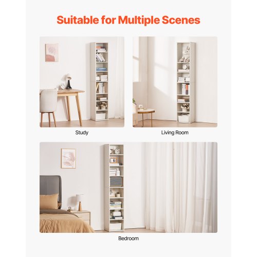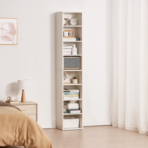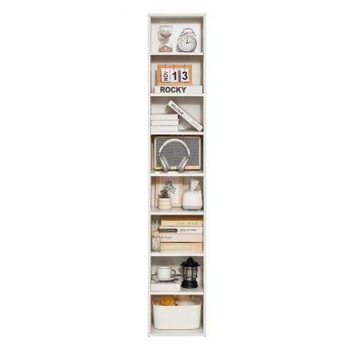 VEVOR Libreria Sottile a 8 Ripiani, Libreria Aperta in Legno Alta 180 cm con Ripiano Regolabile in Altezza, Espositore Autoportante per Riporre a Pavimento, Camera da Letto, Soggiorno, Ufficio, Bianco