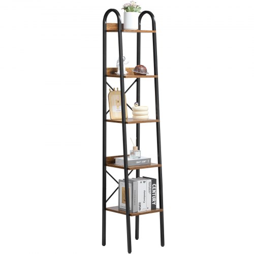 VEVOR Libreria Sottile a 5 Ripiani, Libreria Aperta in Legno 134,5 cm con Ripiano Regolabile in Altezza, Espositore da Pavimento Alto Autoportante, Scaffale per Biblioteca, Soggiorno, Ufficio, Marrone