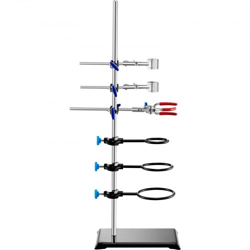 VEVOR Supporto da laboratorio, set di supporto per storta da laboratorio, supporto da laboratorio in acciaio da 60 cm e base in ghisa da 21 x 13,5 cm, include morsetti per matracci