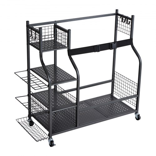 VEVOR Carrello Portautensili per Attrezzature Sportive Palla Racchetta, Carrello Portapalle su Ruote, Portapalle da Basket con Cestini Ganci, Carrello per Attrezzatura Sportiva Giocattoli Utensili