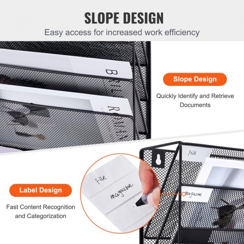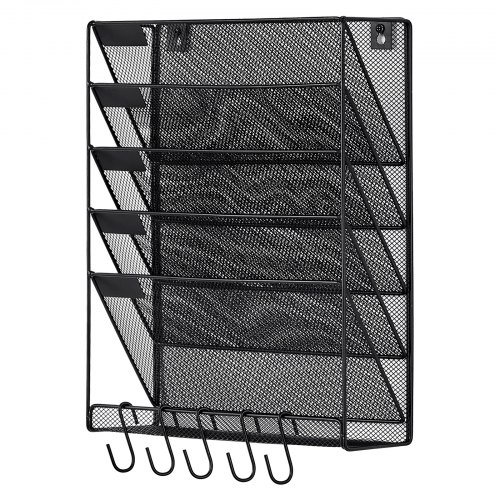 VEVOR Portacartelle da Muro 320 x 105 x 405 mm Portariviste da Muro con 6 Scomparti, Cartella Porta Riviste, Documenti Cartacei Postali, Espositore da Parete, Portadocumenti per Ufficio Scuola, Nero