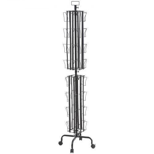 VEVOR Espositore per Biglietti d'Auguri 450 x 450 x 1930 mm Porta Cartoline Girevole a 360° per Brochure Cartoline da 32 Tasche, con Portacartelli, 4 Ruote (2 Bloccabili) per Mostre, Uffici, Fiere