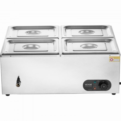 VEVOR Scaldavivande Commerciale con Contenitore 4 x 8,8 L Scaldavivande Elettrico da Tavolo a Vapore in Acciaio Inox da 1500 W per Piano di Lavoro con Controllo della Temperatura da 30-85 °C Argento