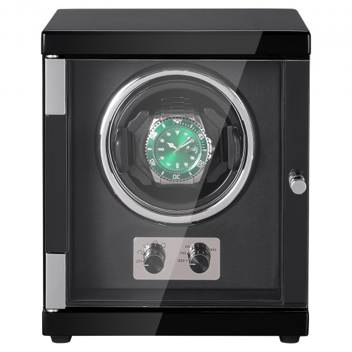 VEVOR Caricaorologi, Caricaorologi singolo per orologio automatico da uomo e da donna, con motore giapponese super silenzioso, luce LED blu e adattatore, guscio ad alta densità e PU nero