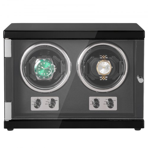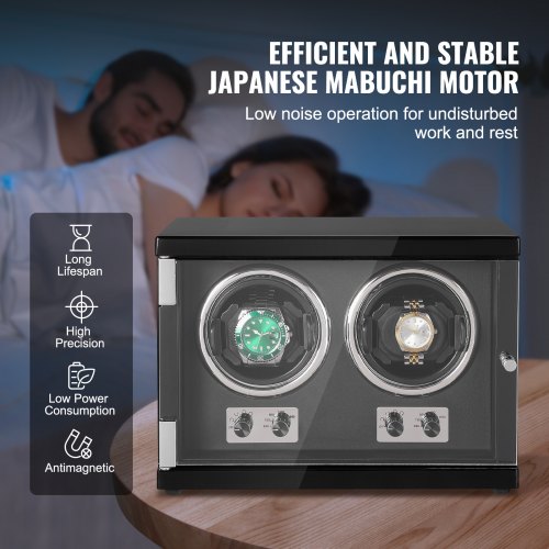 VEVOR Caricaorologi, Caricaorologi Doppio per Orologio Automatico da Uomo e da Donna, con 2 Motori Giapponesi Super Silenziosi, Luce LED Blu e Adattatore, Scocca ad Alta Densità e PU Nero