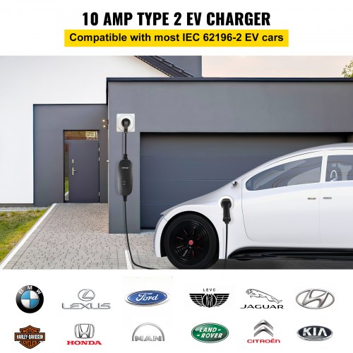 VEVOR Cavo di Ricarica EV Tipo 2, 10 A 2,3 kW Caricatore Tipo 2 EV per Auto Elettrica Portatile Spina UK per I Veicoli Elettrici Europei e I Veicoli Ibridi Plug-in Conformi allo Standard IEC 62196-2.