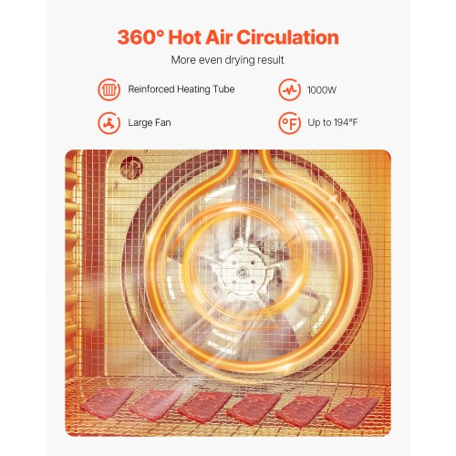 VEVOR Essiccatore per Alimenti, 10 Vassoi in Acciaio Inox, Essiccatore Elettrico per Alimenti da 1000 W con Temperatura Regolabile e Timer da 24 Ore, per Carne Secca, Frutta, Verdura, Erbe Aromatiche