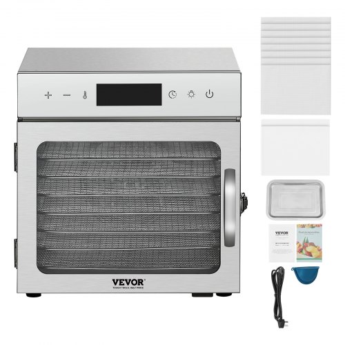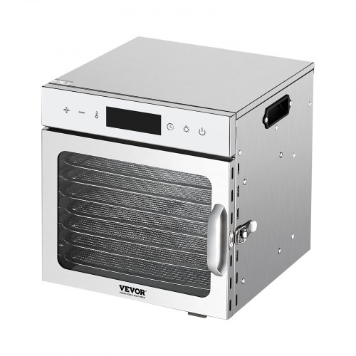 VEVOR Essiccatore per Alimenti 8 Vassoi in Acciaio Inox, Essiccatore Elettrico per Alimenti 400 W Temperatura Regolabile Timer per Carne Secca, Frutta, Verdura, Erbe Aromatiche, Dolcetti per Cani